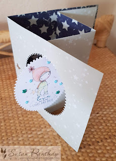 - I added the Santa image coloured with a variety of markers on the Starry paper. I had a few printed versions of this image in my scraps - it was freebie from Gerda Steiner in 2016 - more details of when I last used it here !